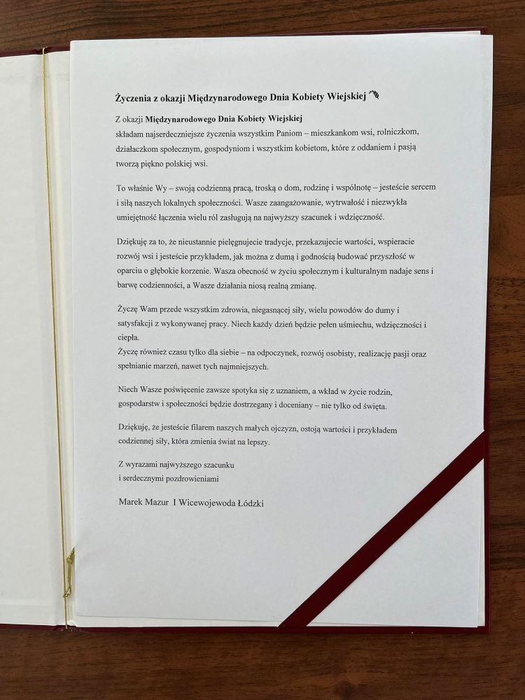 Życzenia Paniom z okazji Międzynarodowego Dnia Kobiet Wiejskich złożyli obecni na konferencji przedstawiciele instytucji związanych z otoczeniem rolnictwa i administracją regionalną oraz lokalną: Andrzej Janik - Dyrektor Wydziału Rolnictwa i Transportu Łódzki Urząd Wojewódzki w Łodzi, który odczytał i przekazał list z życzeniami I Wicewojewody Łódzkiego Marka Mazura, Iwona Obiedzińska - zastępca dyrektora Departamentu Rolnictwa Urzędu Marszałkowskiego Województwa Łódzkiego, Piotr Sęczkowski - Burmistrz Miasta i Gminy Poddębice, Alina Karwacka - Słomczewska Prezes Zarządu Banku Spółdzielczego w Poddębicach, Grzegorz Skrzypczyński Przewodniczący Rady Nadzorczej Banku Spółdzielczego w Poddębicach, Leszek Chmielecki Kierownik Biura Powiatowego Agencji Restrukturyzacji i Modernizacji Rolnictwa w Poddębicach, Bronisław Węglewski - Prezes Izby Rolniczej Województwa Łódzkiego, Jacek Ossowicz - Wiceprezes Izby Rolniczej Województwa Łódzkiego, Grzegorz Antoniewski - Członek Zarządu Izby Rolniczej Województwa Łódzkiego, Jan Kołodziejczyk - Członek Zarządu Izby Rolniczej Województwa Łódzkiego, Adam Michaś - Delegat Izby Rolniczej Województwa Łódzkiego do Krajowej Rady Izb Rolniczych.