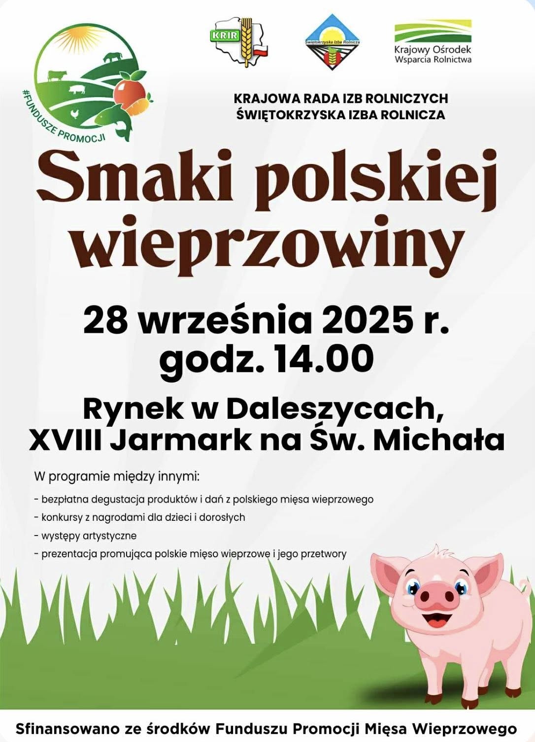 To wyjątkowa okazja, by spróbować wyrobów i dań z polskiej wieprzowiny i dobrze się bawić. Wydarzenie odbywa się w ramach XVIII Jarmarku na Św. Michała. Promocję sfinansowano ze środków Funduszu Promocji Mięsa Wieprzowego. Do miłego zobaczenia